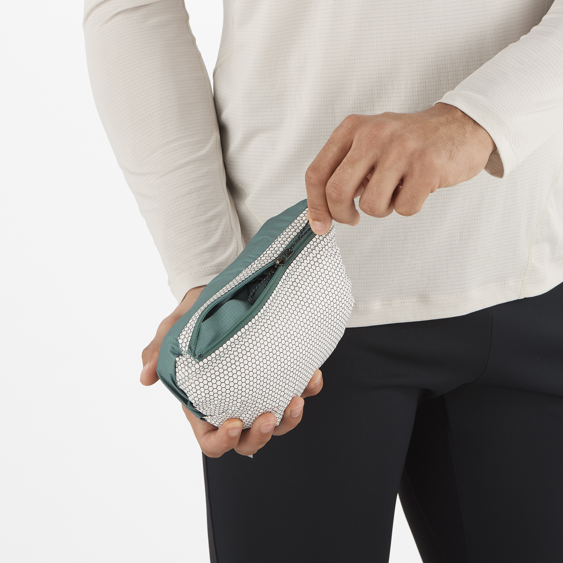 El tejido se mueve contigo. La capucha con elástico se mantiene en su sitio.